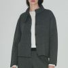Campera tramada con cuello bomber y bolsillos, con ajuste regulable en el bajo y mangas tipo balloon.