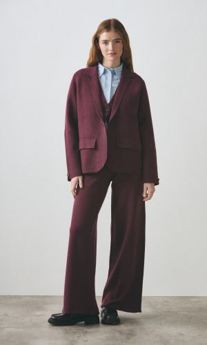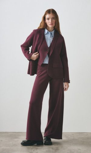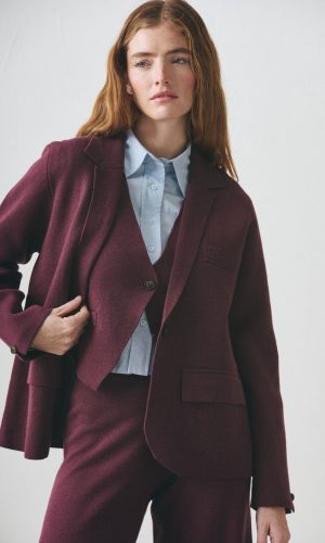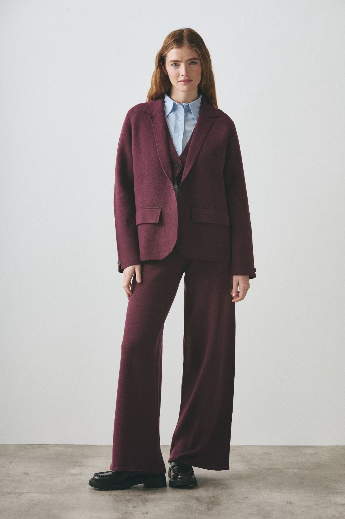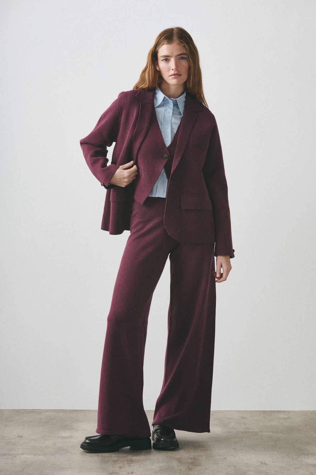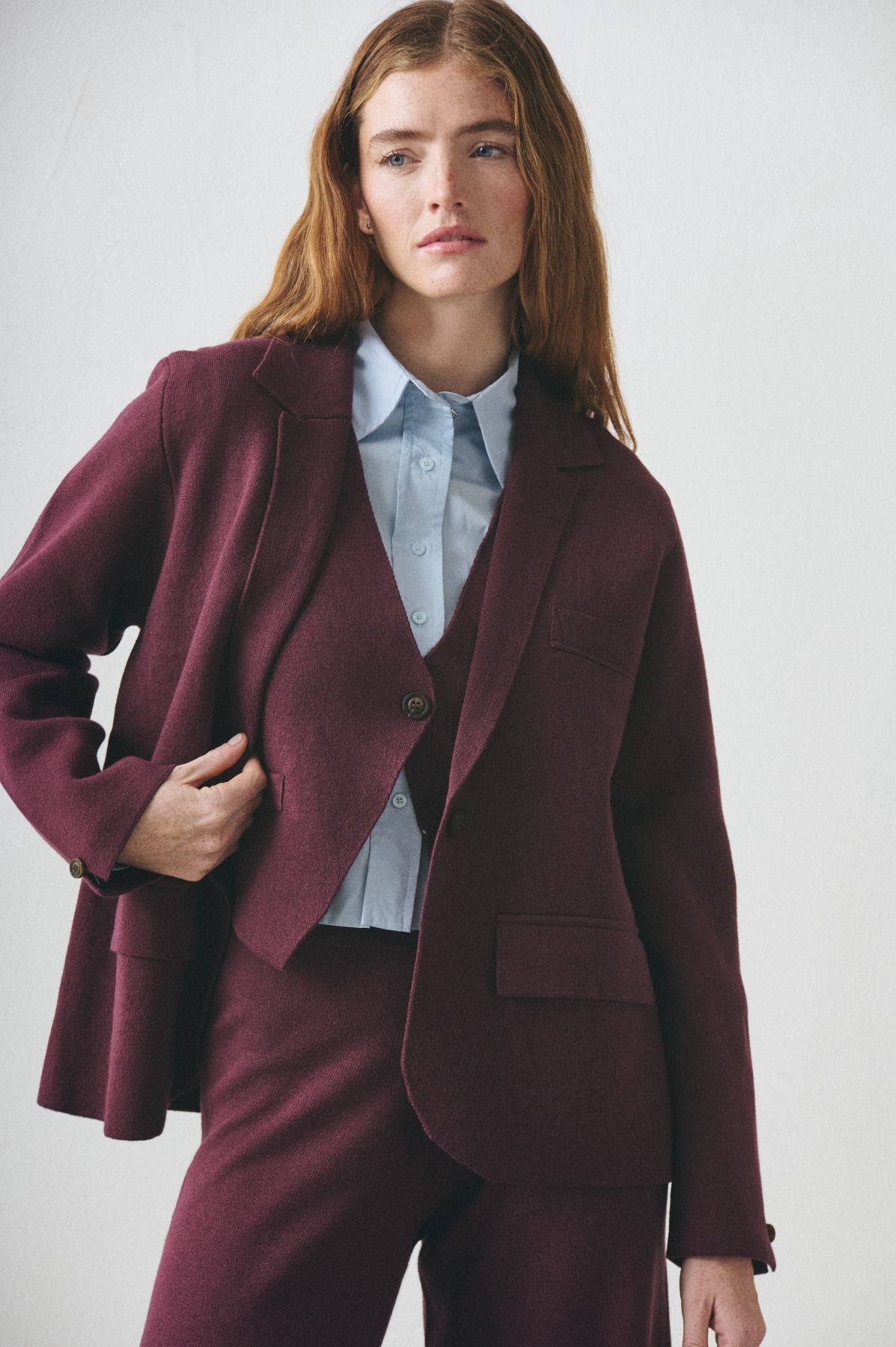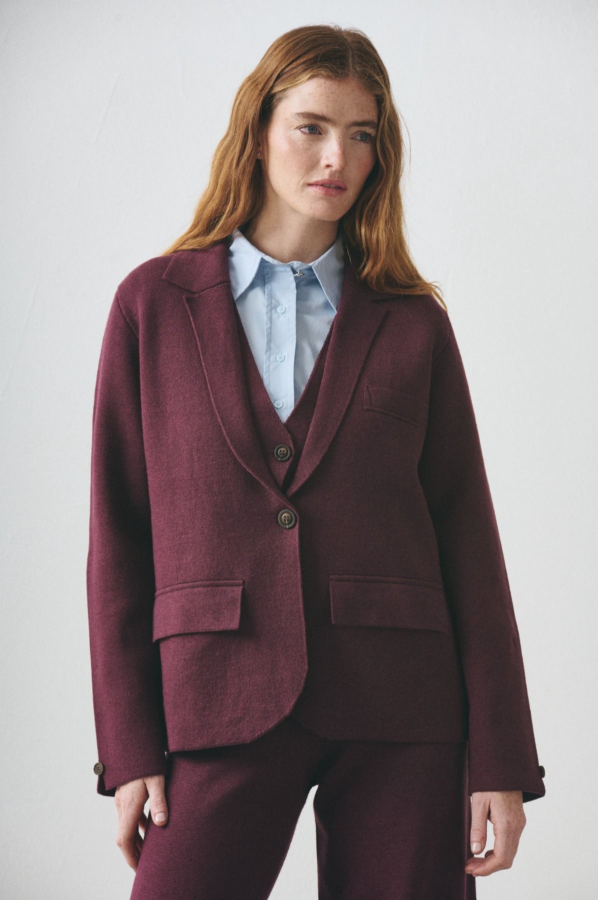 Blazer tramado con solapa, bolsillos y acceso central con botón.