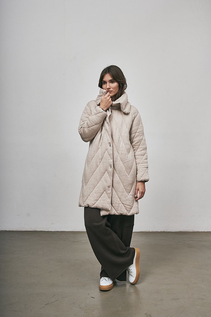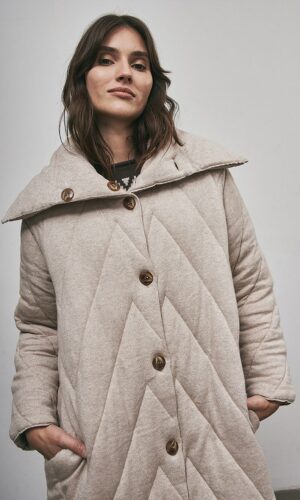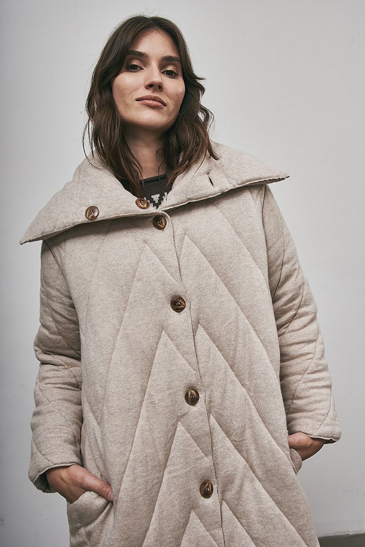 • Los productos Air Knit son fabricados con la tecnología Shima Seiki Inlay (única en Latinoamérica) que teje en simultáneo paños con una estructura de ‘doble cara’ compuesta por dos capas de tejido y rellenas con filamentos. Al entrar en contacto con el calor en el proceso de producción, la trama se expande con aire, lo que genera un efecto acolchado tridimensional. Así, con el mismo principio de una bolsa de dormir, provee un abrigo similar al de las camperas infladas, pero con una composición 100% tejida.